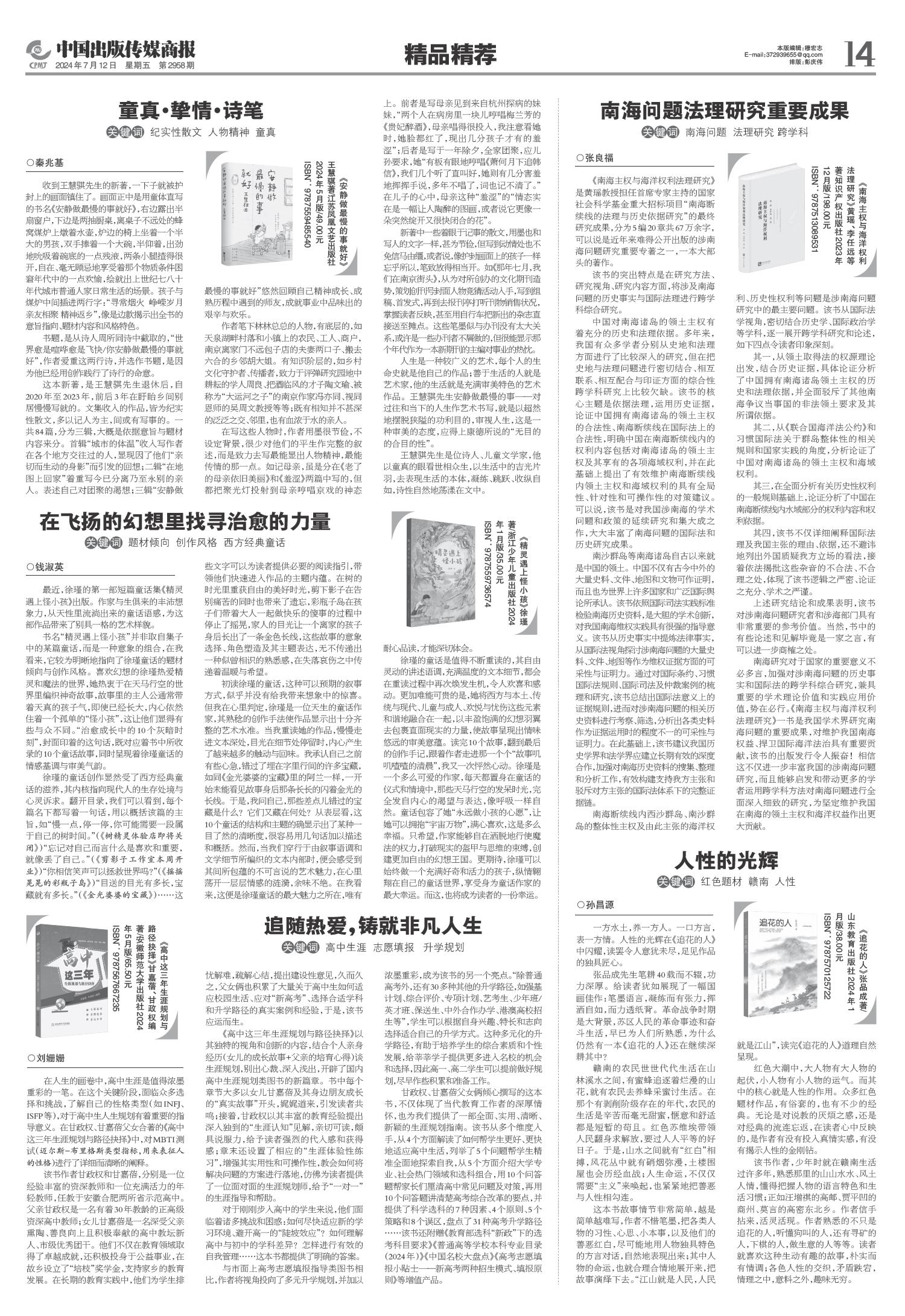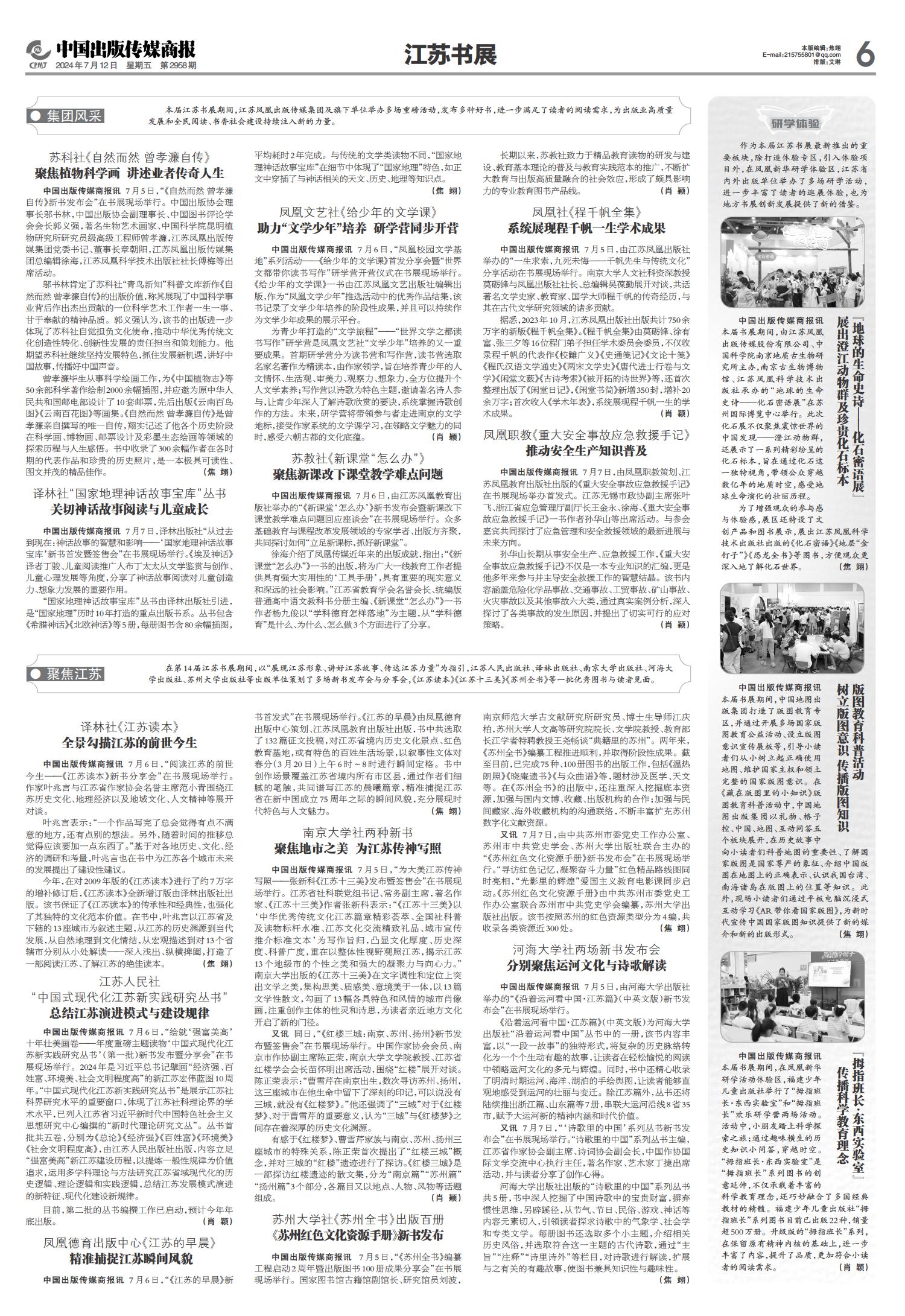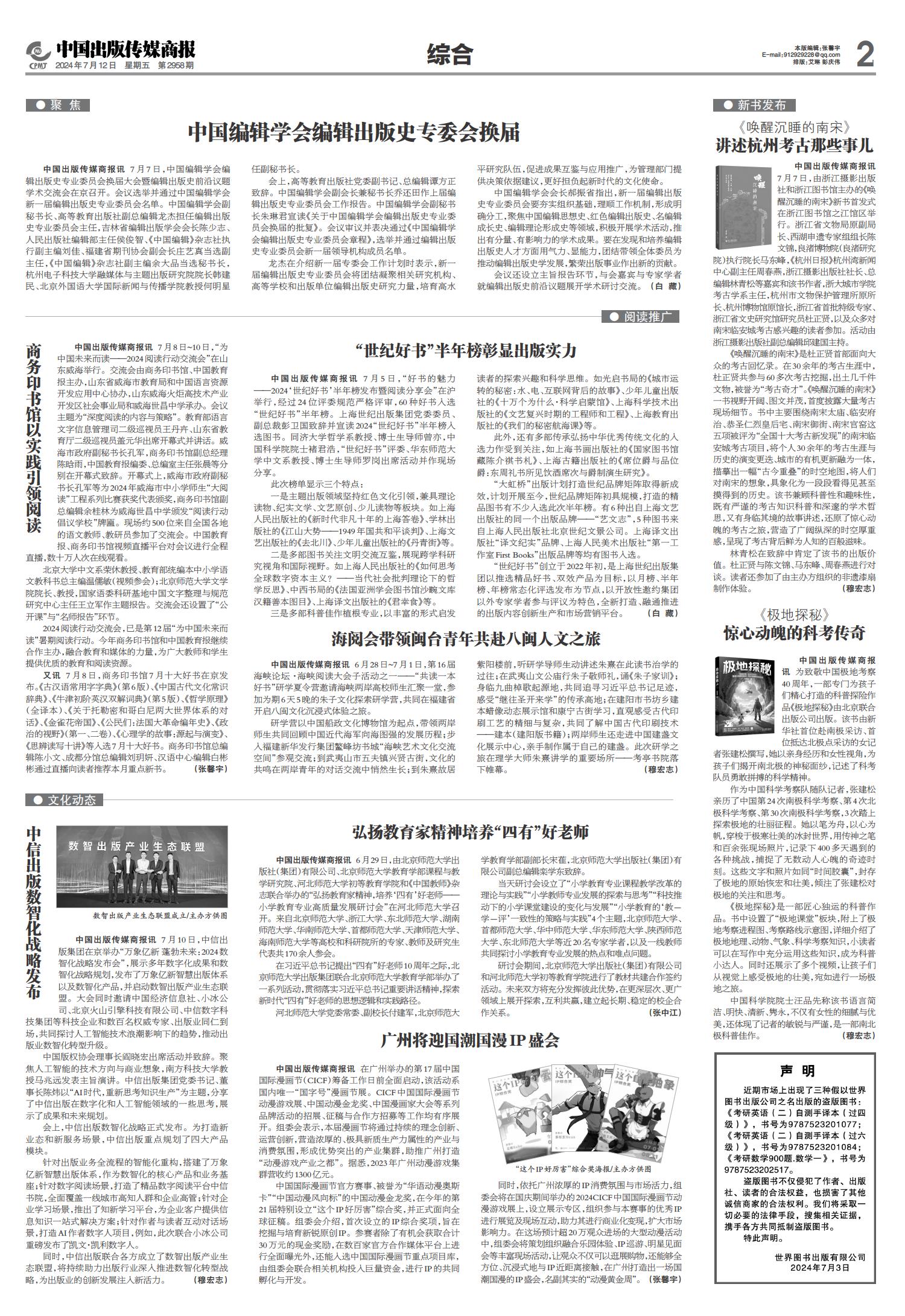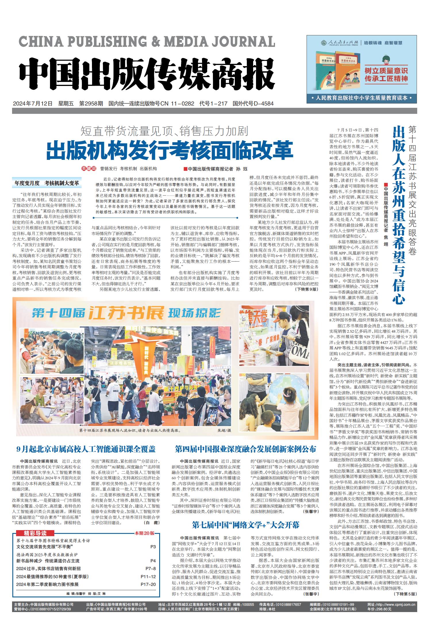 01 一版要闻 02 综合 03 特贡奖专题 04 世界出版 05 江苏书展 06 江苏书展 07 分销新视野 08 分销新视野 09 出版报道 10 出版报道/特训营精华 11 奇迹童书大赏 12 奇迹童书大赏 13 中外交流 14 精品精荐 15 精品精荐 16 精品精荐 17 中国阅读周报 18 中国阅读周报/2024年第二季度影响力图书推展 19 中国阅读周报/2024年第二季度影响力图书推展 20 中国阅读周报/2024年第二季度影响力图书推展 21 中缝 22 中缝