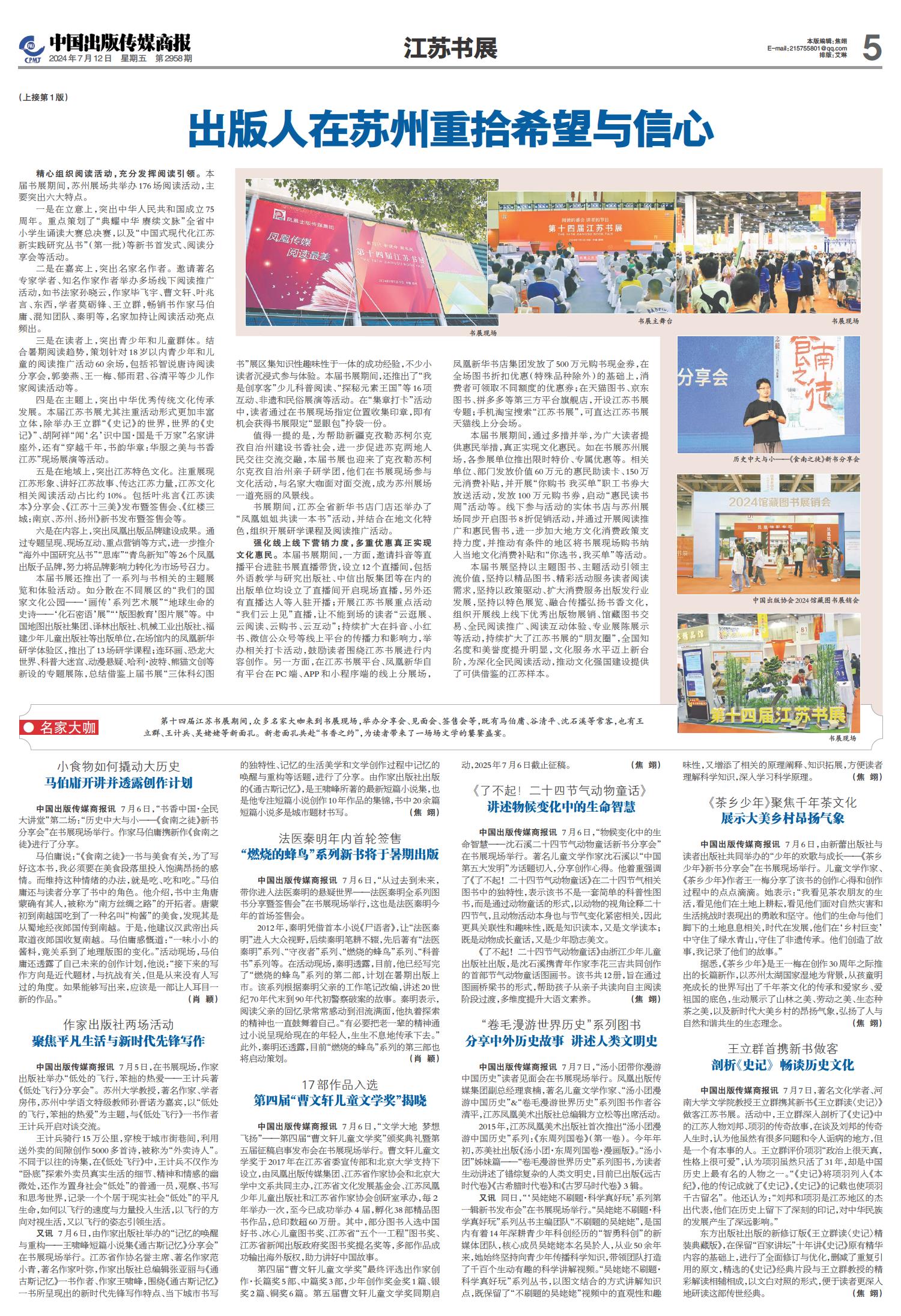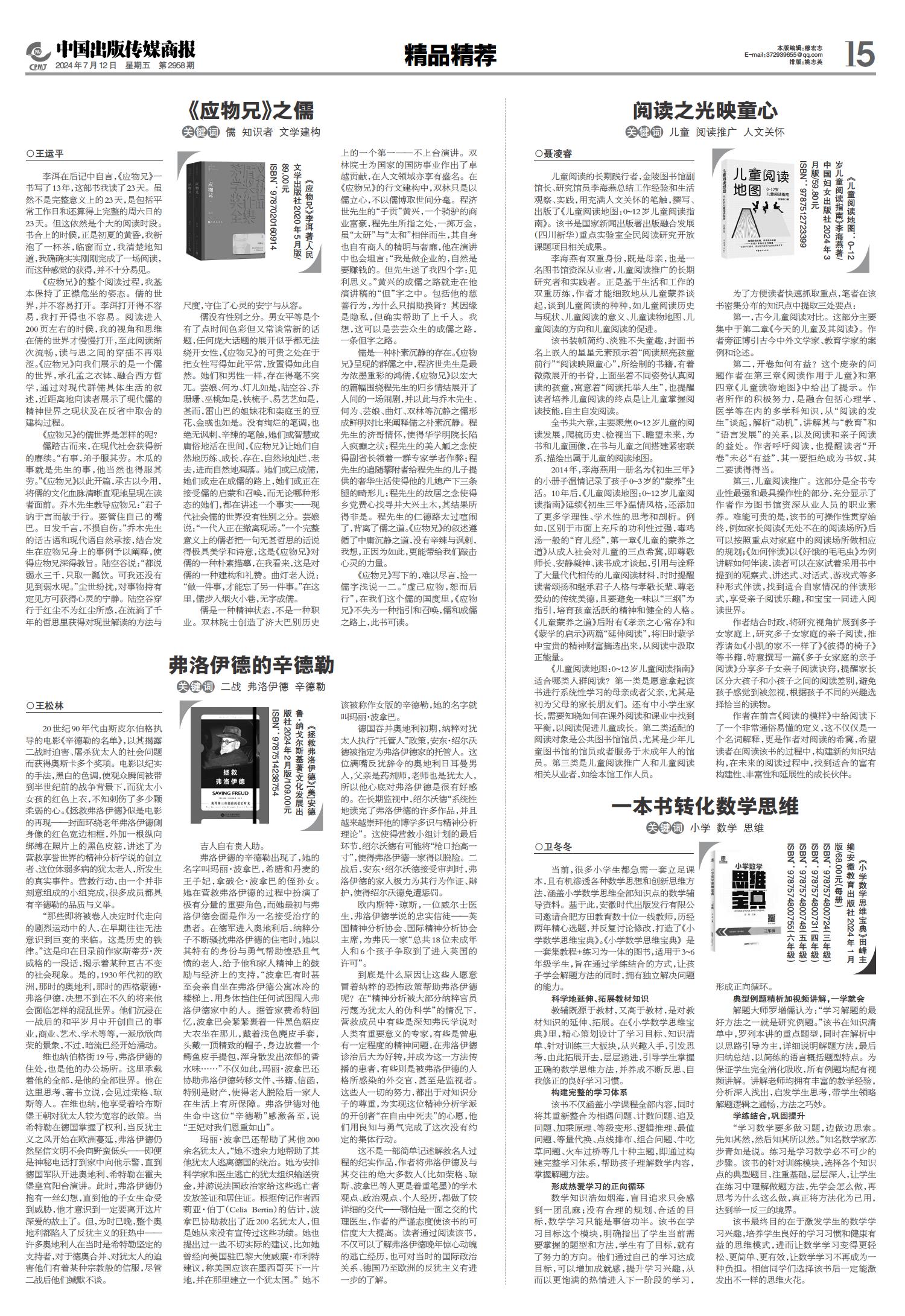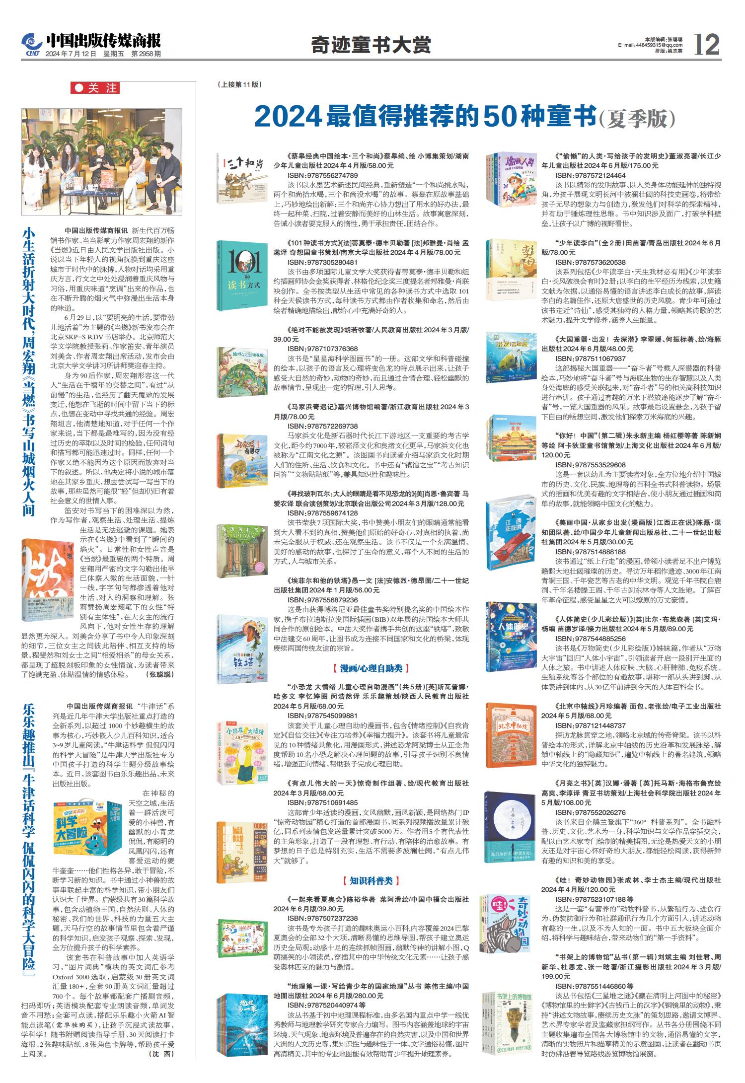 01 一版要闻 02 综合 03 特贡奖专题 04 世界出版 05 江苏书展 06 江苏书展 07 分销新视野 08 分销新视野 09 出版报道 10 出版报道/特训营精华 11 奇迹童书大赏 12 奇迹童书大赏 13 中外交流 14 精品精荐 15 精品精荐 16 精品精荐 17 中国阅读周报 18 中国阅读周报/2024年第二季度影响力图书推展 19 中国阅读周报/2024年第二季度影响力图书推展 20 中国阅读周报/2024年第二季度影响力图书推展 21 中缝 22 中缝