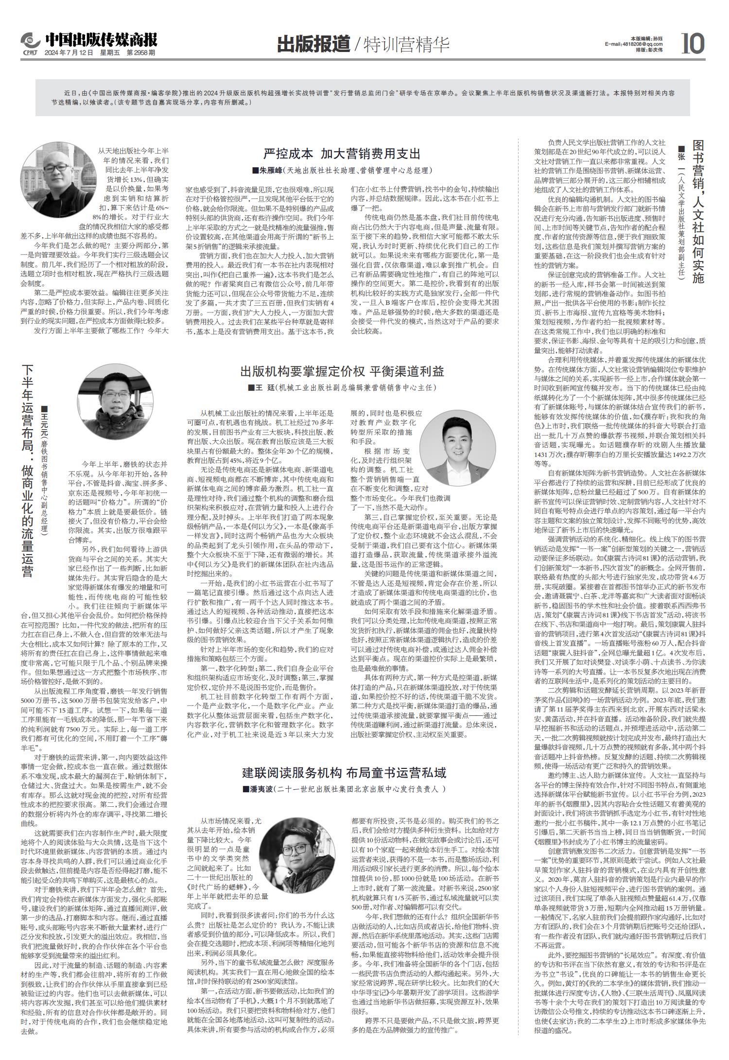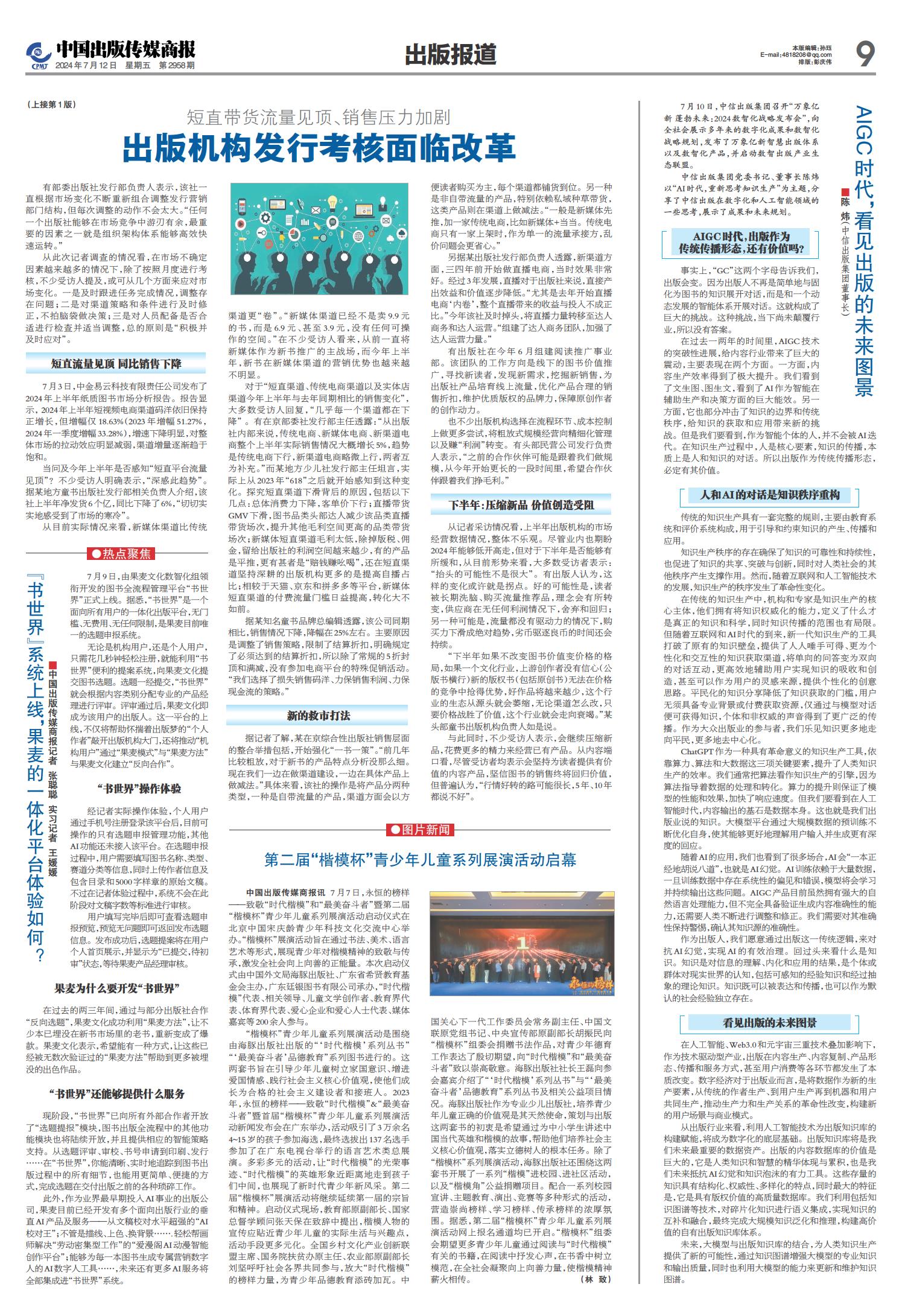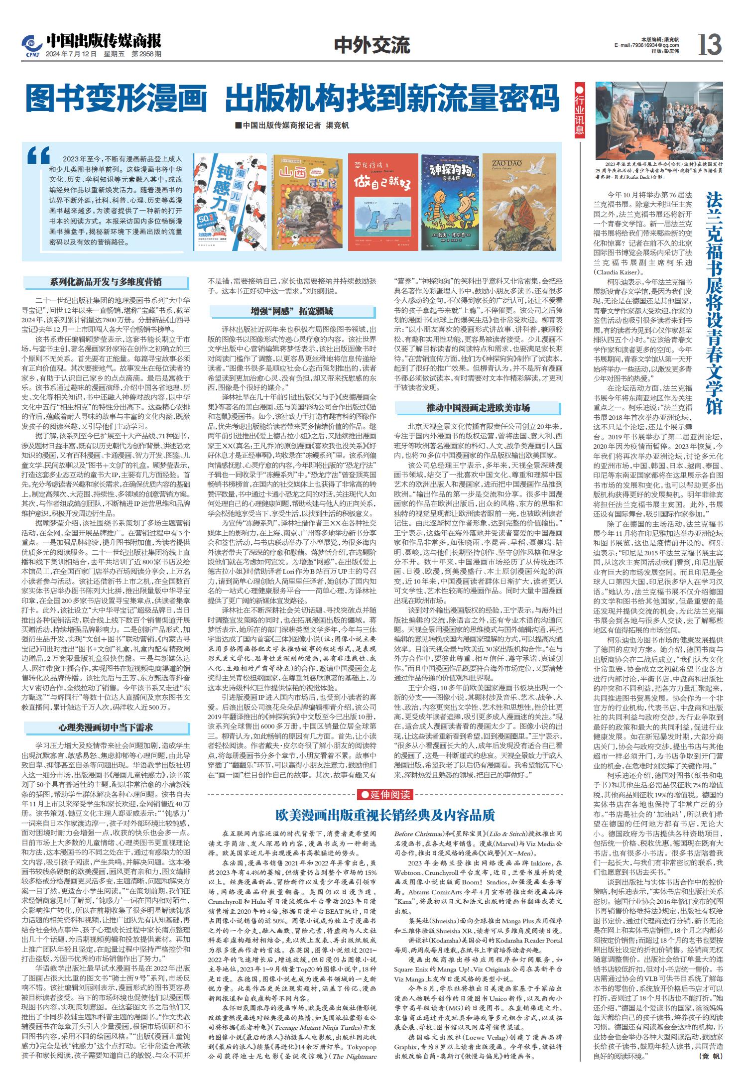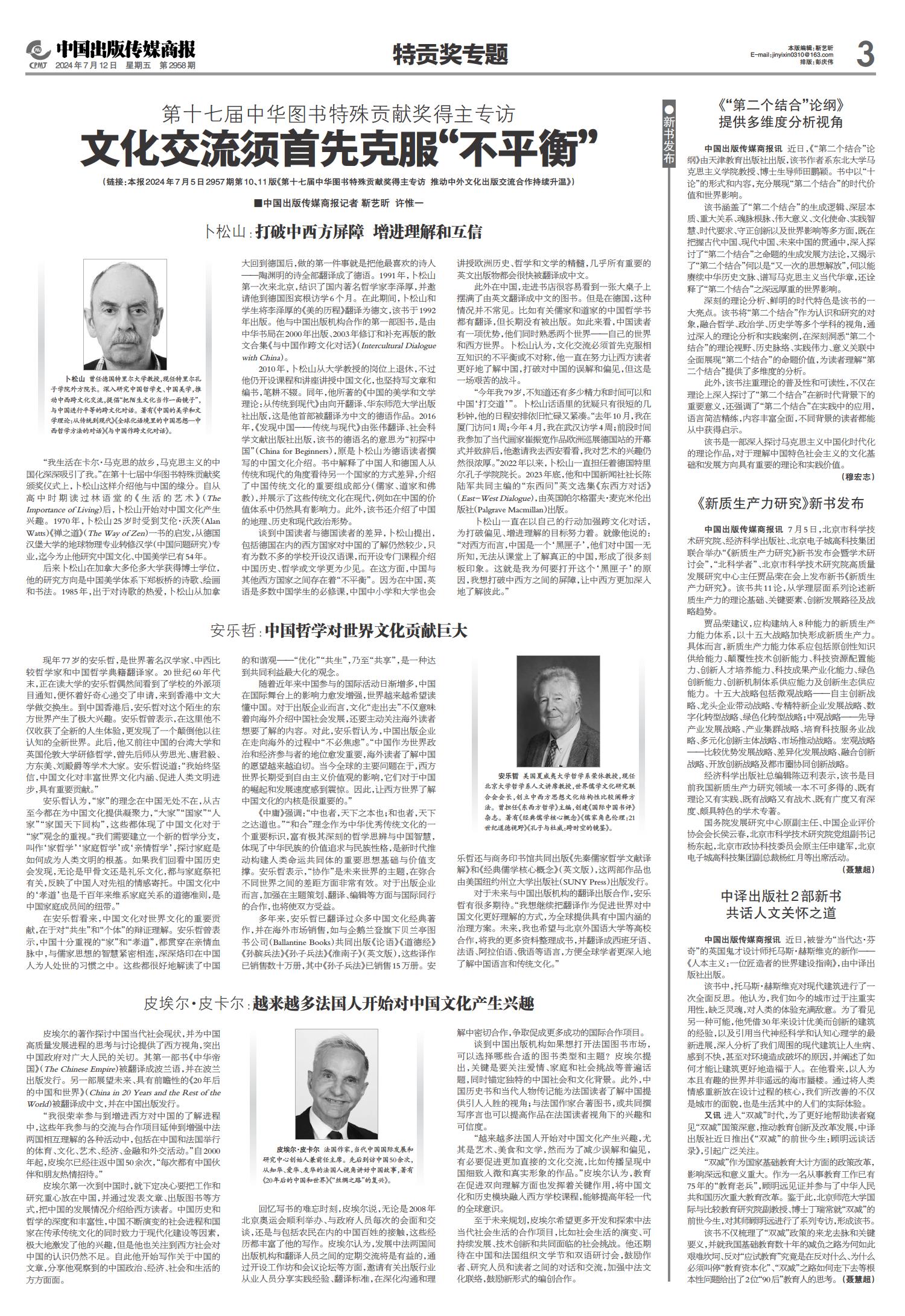 01 一版要闻 02 综合 03 特贡奖专题 04 世界出版 05 江苏书展 06 江苏书展 07 分销新视野 08 分销新视野 09 出版报道 10 出版报道/特训营精华 11 奇迹童书大赏 12 奇迹童书大赏 13 中外交流 14 精品精荐 15 精品精荐 16 精品精荐 17 中国阅读周报 18 中国阅读周报/2024年第二季度影响力图书推展 19 中国阅读周报/2024年第二季度影响力图书推展 20 中国阅读周报/2024年第二季度影响力图书推展 21 中缝 22 中缝