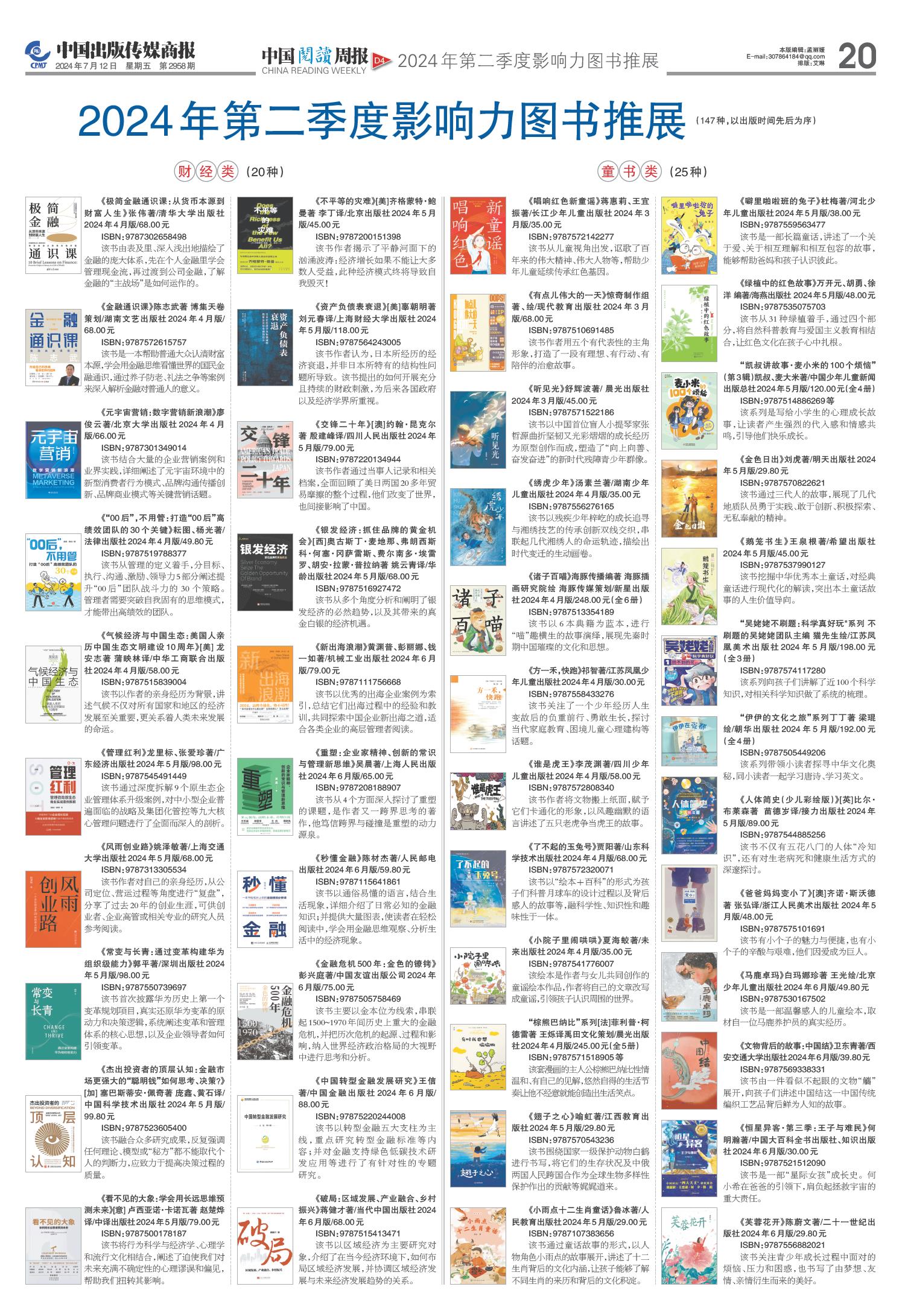 20 中国阅读周报/2024年第二季度影响力图书推展