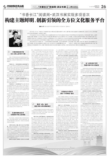 9月19日~21日,“书香长江”阅读周·武汉书展在武汉国际会展中心举行,集中展示湖北出版发行业最新成果,弘扬长江文化,更好地服务长江经济带发展和“书香湖北”建设。