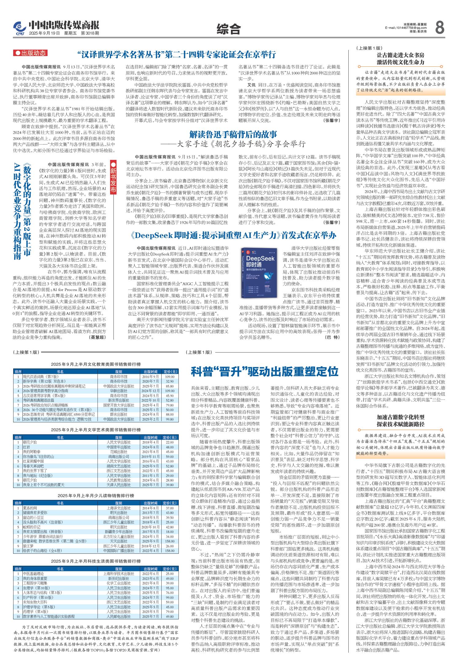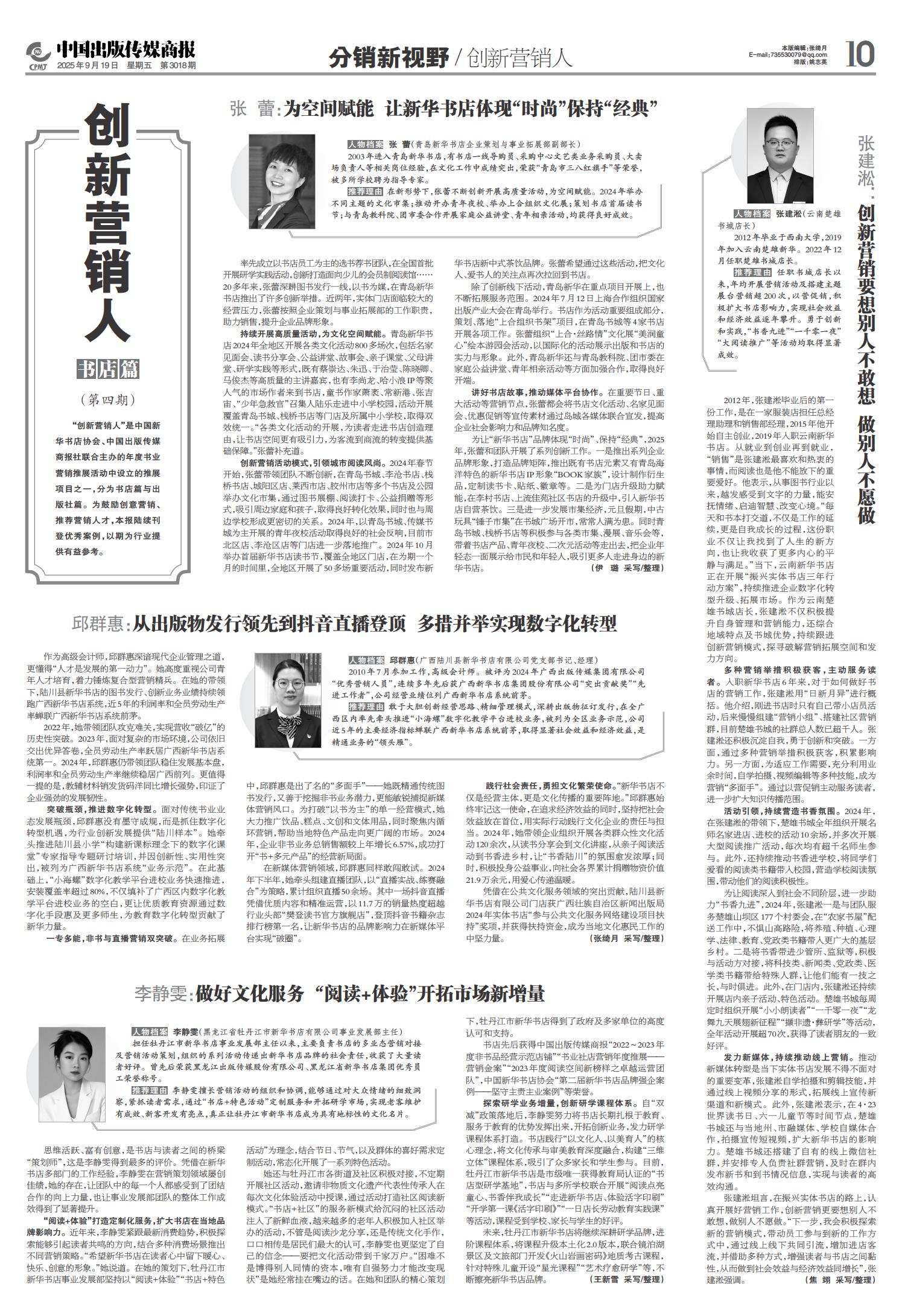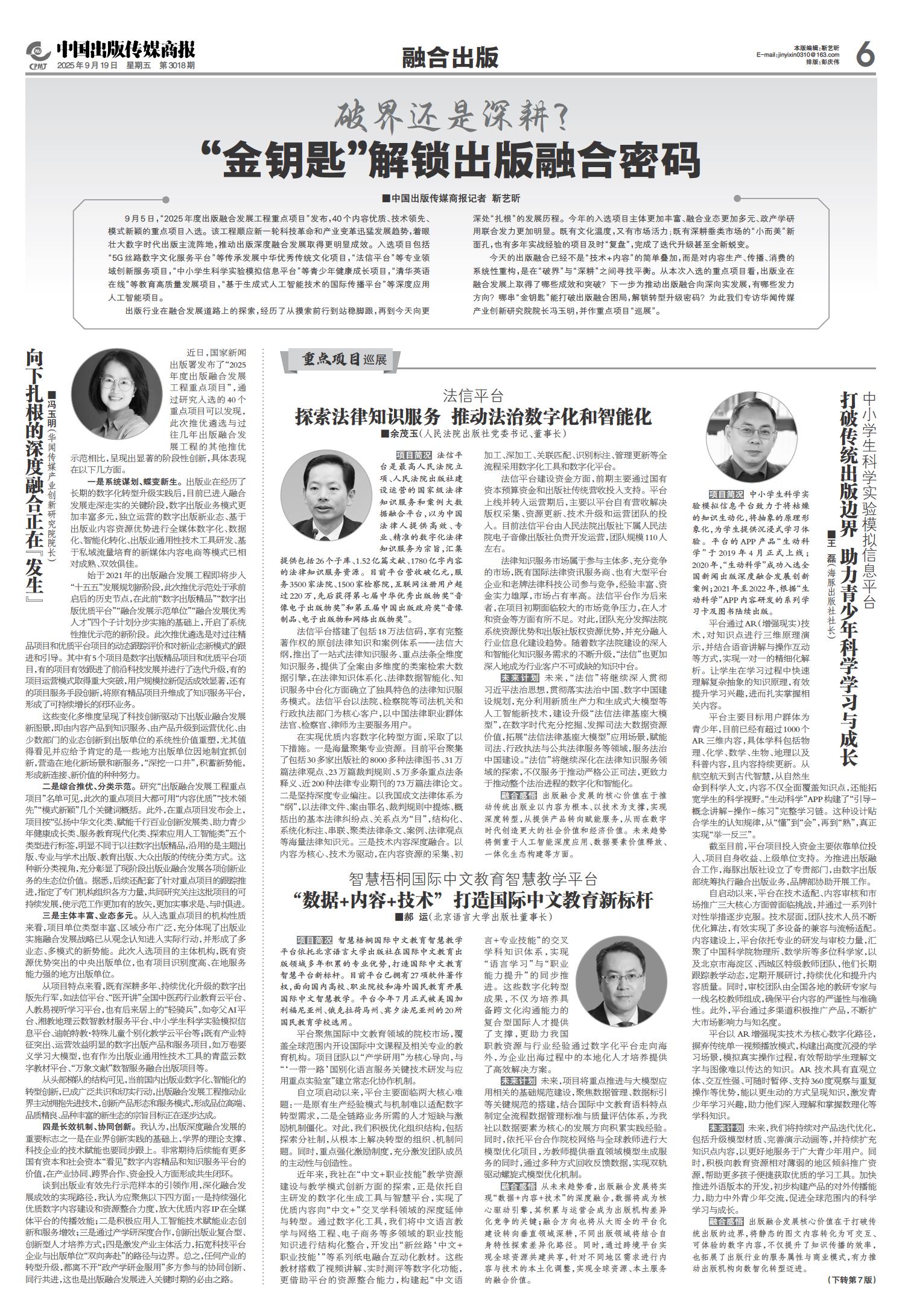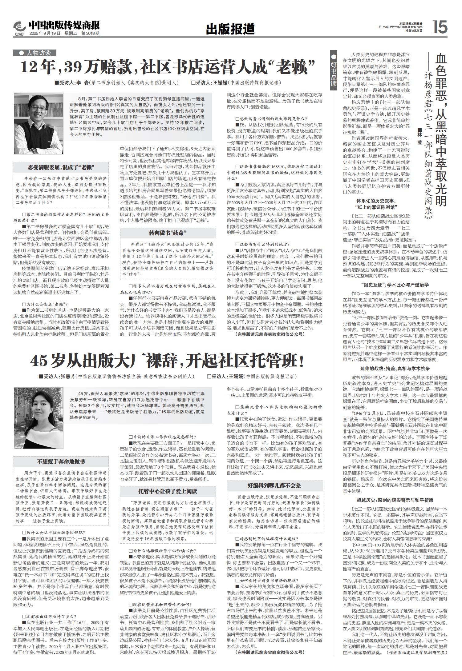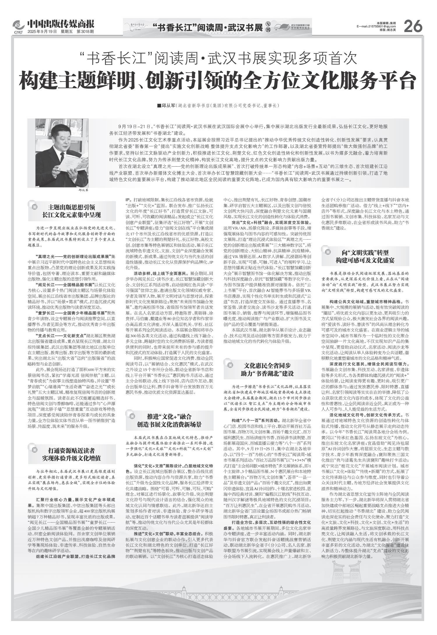 01 一版要闻 02 出版报道/访谈 03 科普出版专题 04 科普出版专题 05 科普出版专题 06 融合出版 07 融合出版 08 综合 09 产业观察 10 分销新视野/创新营销人 11 分销新视野/书店文创 12 世界出版 13 出版报道 14 出版报道 15 出版报道 16 作家访谈 17 业者论坛 18 精品精荐 19 精品精荐 20 精品精荐 21 “书香长江”阅读周·武汉书展专刊 22 “书香长江”阅读周·武汉书展专刊 23 “书香长江”阅读周·武汉书展专刊 24 “书香长江”阅读周·武汉书展专刊 25 “书香长江”阅读周·武汉书展专刊 26 “书香长江”阅读周·武汉书展专刊 27 “书香长江”阅读周·武汉书展专刊 28 “书香长江”阅读周·武汉书展专刊/广告 29 中缝 30 中缝