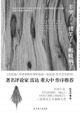 陈亚珍新著《羊哭了,猪笑了,蚂蚁病了》,以梨花庄为中心,写生活在这方土地上的人们从抗战时期到改革开放后的新世纪的生存状态、苦难历程,是用至真哲思审视世界、剖析人性、解读苦难、拷问灵魂的警世之作,是呼唤民族记忆、充溢着哲理思考与诗性寓意的宏大叙事。