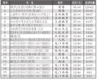 随着9月份开学季的来临,书店人头攒动,文教类图书出现了井喷态势,此类书销售也达到了一年的顶峰。受其主要带动,8月趋于下探的图书市场走出了上扬行情,市场形成了V字走势。再次证明文教书刚需的影响之大。从2012年9月商报数据组监控的全国民营图书零售市场销售情况来看,监控书店前20名销售总量为96673册,较8月的82600册,环比上涨了17.04%;民营总榜前20名销售总量为57799册,较8月的46083册,环比上涨了25.42%。