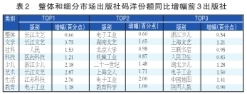 整体和细分市场出版社份额同比增减变化点析:长江文艺表现最优
