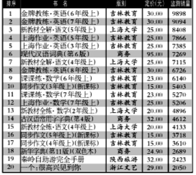 就细分市场而言,文教类图书9月份表现仍然突出,环比继续增长。最受市场欢迎的主要有三大类产品:一是各种工具书如《现代汉语词典(第6版)》、《古汉语常用字字典(第4版)》、《新华字典(第11版)(双色本)》、《牛津高阶英汉双解词典(第7版)》等不受区域影响,一直是文教类图书的支柱产品。二是各类作业、同步练习、中小学教材全解、作文讲解等与教学配套的同步教辅,也是学生必备,但由于受到各区域教材版本不同的限制,此类教辅区域色彩更为浓重,在某个区域表现突出,但相对而言,全国市场占有率受限。三是文学名著如“繁星春水”等阅读教辅和英语学习图书在9月表现也很抢眼。