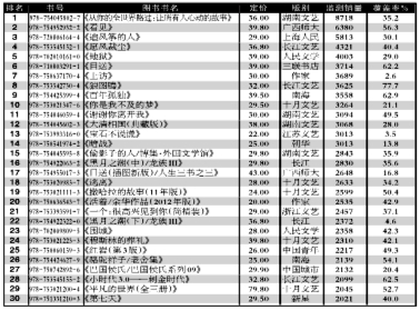 (注:本版和5、6、8版所有图书排行榜除细分市场排行外,均不包括中小学教材教辅、政治、语言和地图类图书。)