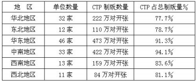 与此同时,在2013年度全国报纸印刷制版量及CTP使用情况调查中,参与调查并提供有效数据的有147家报纸印刷厂,总制版量为1686万张,其中CTP制版量为1470万张,CTP制版占总制版量的87.22%。据估算,本次调查的总制版量应占全国报业印刷总制版量的70%。以此计算,2013年全国报业总制版量为2409万张,其中CTP制版量为2101万张。在调查统计的147家报纸印刷厂中,95.9%的印刷厂安装了CTP制版设备,57.1%的印刷厂全部使用CTP制版。在全国报纸印刷制版工艺中,CTP占总制版量的比例,自2007年的8%,2010年的38%,到2011年的55%、2012年的76.7%,在2013年达到了87.2%。可以看到,CTP制版在全国报纸印刷中,已经得到了全面普及,传统的PS版制版基本被替代,全国报业印刷CTP直接制版工艺的改革基本完成。              (新文)