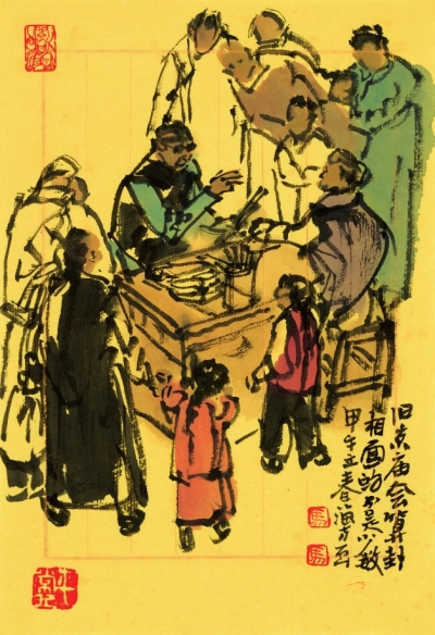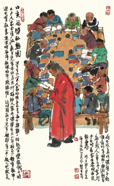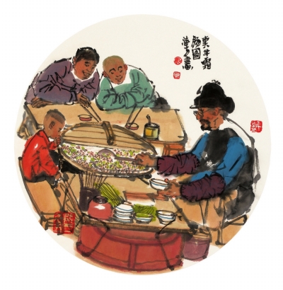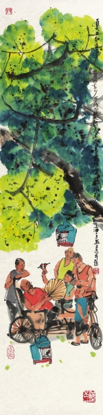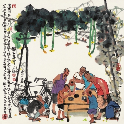 马海方先生1981年毕业于中央美院中国画系。师从卢沉、姚有多、刘勃舒诸先生,是中国美协会员,荣宝斋画院教授,荣宝斋签约画家,北京文史馆馆员。几十年如一日,一直致力于京味艺术的收集、整理、发掘。他大量写生,勤奋创作,绘画题材由点到面,由浅入深,不间断地充实、发展、提高。作品涵盖老北京风情习俗之方方面面,笔精墨妙,引人入胜,风格独特,影响广泛。以没骨入画,适度勾线,在强调造型准确的基础上对人物作适度夸张,且设色巧拙明亮,不拘一格,在继承传统水墨的同时巧妙融入西画的一些技法、民俗的诸多成就,使之极具观赏性与时代审美,形成独树一帜的绘画风格。