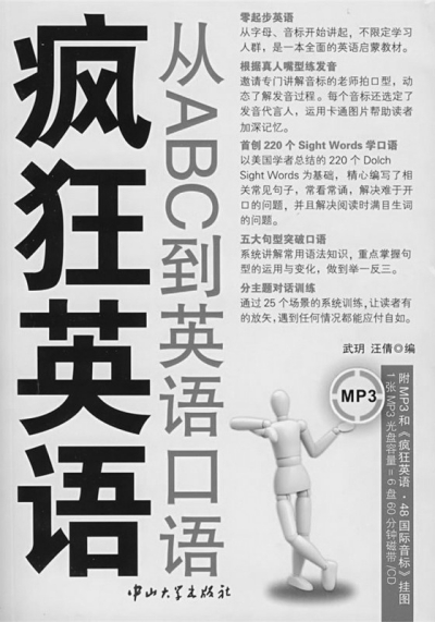 中山大学出版社推出的“疯狂英语”系列(16开本,定价从20元至40多元不等,平装)图书已有多年时间,可以称得上是市面上最早的“疯狂英语”品牌图书。据该社总编辑周建华回忆,2008年,图书出版的竞争压力已经较大,从图书市场情况看,中小学教辅、青少年读物(包括科普图书、少儿文学等)、语言学习类读物,以及部分文史哲和经济管理类图书的销售情况较好,所以从中山大学社自身的特色出发,该社选取了做英语类大众读物。