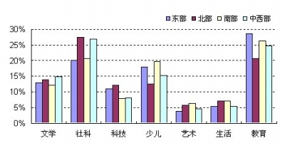 区域图书市场概述:教育类在东部销售佳文学类在中西部市场较有优势
