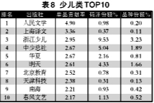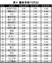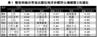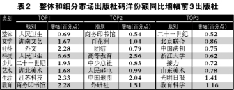 整体和细分市场出版社份额同比增减变化点析:科技类出版社占据榜首