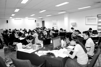 2014年6月7日,与高考开始时间同步,教辅分社100余人的团队集体入驻远离本部的外研国际会议中心,全力突击“600分考点700分考法”系列的B版。B版与A版的区别之一,就是要加入当年高考的新题。为了能够第一时间抢滩市场,整个团队进行了长达10多天的“封闭式作战”,经过每天工作到夜里两三点甚至通宵作战的高负荷运转,将1000余个印张的产品顺利发货,完成了大家在出发前认为“不可能实现的任务”。这样的团队作战在外研社发展史上难得一见。而类似努力的片段对于教辅分社而言不止一处,它还存在于周末办公楼进出登记本上来自教辅分社员工的密密麻麻的签名,存在于大型驻店巡店过程中“路过玉米地、走过泥泞路”的独特体验……在如此这样创业者般的实干和热情中,整个团队正在越来越紧密地“拧成一股劲”,发展向心力正在滋生。