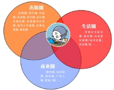 同事圈、同行圈、作者圈、译者圈、发行圈、设计圈出版社圈、民营图书公司圈、图书工作室圈、自费出版圈、媒体圈……