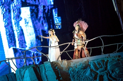 值得一提的是,该剧尝试破解“嫦娥为何奔月”以及“嫦娥怎么奔月”的命题,通过高科技的舞美手段呈现山水美景。其中,月球剧场是由湖北香泉映月生态旅游发展有限公司打造的亮点。月球剧场外观是由两块四分之一球面拼成的半球面,在剧场外围水系倒映下,会拼成一个“月亮”,届时将与天上月、水中月形成“三月交辉”的奇异盛景。月球剧场的主舞台,环抱十多根30多米高的“石柱”装置,正面耸立全球最高的40米山形真彩LED屏,外部转盘与内部旋转巧妙组合,祭台中央设有可调节升降角度的斜坡、转盘,多媒体奇幻效果,与能够打破空间限制的舞美装置,彼此呼应无缝连接。当戏剧推进高潮处,再画龙点睛地配合着高空威亚调度,成为实景演出货真价实的升级换代“样板戏”。 (王 一)