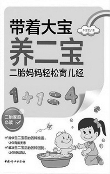 当父母做好选择之后,紧接着又面临着二孩宝宝该如何教育的问题。如今的父母,尤其是年轻一代的父母,比起凭借经验养育下一代,更注重运用一些先进的科学方法教育下一代。如何促进大宝和二宝的感情?如何照顾大宝的心理和情感?当两个孩子发生争执时,又该如何解决矛盾? 等等这些问题自然地融合在相关知识和技能的指导当中,而不是简单地告诉读者:出现哪些问题,应该做哪些事。如《再生育知识读本》(浙江科学技术出版社2015年10月版)《二孩时代》(化学工业出版社8月版)《家有两宝:二胎家庭有话说》(华东师范大学出版社2015年8月版)《带着大宝养二宝——二胎妈妈轻松育儿经》(中国妇女出版社2015年6月版)《给孩子一个伴儿——二胎养育之道》(青岛出版社2015年5月版) 《家有二宝:二胎养育攻》(湖南科技出版社2015年5月版),这些书比起一般的孕育图书多了一分人文关怀,从阅读层面上讲阅读起来既生动又温馨。其中《二孩时代》和《家有两宝:二胎家庭有话说》作者根据自身经验,从而对两个孩子在成长过程中的遇到的问题和现象进行解剖。这两本书分别由马颖和李一慢创作,二人从心理学角度告诉身为父母的家长针对不同出生顺序的孩子采用不同的教育方法,给予两个孩子最好的童年经历是两位作者的创作重点。