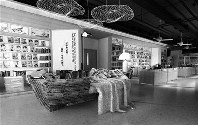 特色:言几又书店·荟聚店设立了特别策划单元 “重读”,集中摆放经典著作;文创产品散落在书店的各个角落;咖啡餐饮区空间密度很低,墙上有自行车零部件的装饰,并有作家留言。