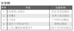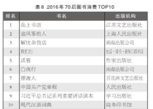 上书店》《我们仨》《白夜行》《活着》《好吗好的》《天才在左 疯子在右》。相比2015年,曾主打“文艺、减压”刷爆了朋友圈的《秘密花园》不见踪影;《解忧杂货店》上升两位,《白夜行》《天才在左 疯子在右》冲进前10。