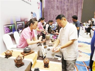 山东济宁亚龙书城有限公司总经理崔亚龙被展订会上的龙泉青瓷所吸引,他认为龙泉青瓷具有相当高的文化品位和地域特色,能够满足各年龄段、各层次人群的消费需求。“对于文创产品的引入,我觉得应该采用‘自创+他创’模式相结合,一方面加大公司对于文创产品的开发力度,提高自有品牌竞争力;另一方面通过引入其他企业的有特色、有个性的文创产品,吸引更多消费者。”