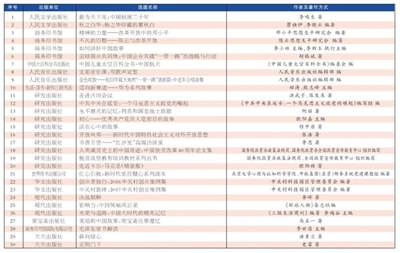 推出一系列反映当前热点问题的主题图书,如《开放兴邦——新时代中国特色社会主义对外开放思想》《走近卡尔·马克思(精装版)》《中国道路与人口老龄化》《中国改革与发展热点问题研究(2019)》《人类减贫史上的中国奇迹:中国扶贫改革40周年论文集》《乡村调研:宋家沟》《如何讲好中国故事》《支部音乐课:用歌声宣誓》《金色绽放——祖国华诞天地欢“一带一路”谱新篇·中老年合唱曲集》《中国儿童太空百科全书·中国航天》等。关注当前热点问题,对问题进行梳理,回答解决问题的重大意义,系统阐述破解难题的路径,深入分析重要问题,对中国发展道路进行学术表达。