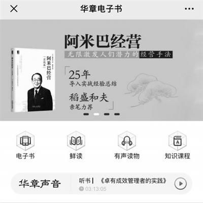 目前,华章鲜读是“华章电子书”微信公众号平台“在线书城”中的一款H5产品,与电子书、知识付费、有声读物形成并列产品矩阵。分发模式则暂时立足于“华章电子书”平台。“不久的将来内部会做架构调整,有可能与华章书院合并,将两者的用户叠加运营。”据李良透露,华章旗下包括管理的常识、华章心理、华章经管等在内的300万用户新媒体矩阵都会助力华章鲜读的成长。有意思的是,华章旗下的新媒体平台几乎都是按照市场规则运作,“即便是自家产品,也需要提供适配内容才有露脸机会”。