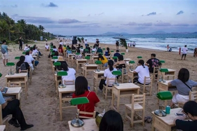 晚上,在沙滩音乐派对上,著名乐队Matzka&Mr.WooHoo、资深电子音乐人马海平演绎了十分动感的音乐现场。主办方还借鉴了美国国家图书馆大厅的陈设,特别在海滩上摆放了100张书桌,布置绿色复古台灯,让观众驻足欣赏多元化的人文艺术。