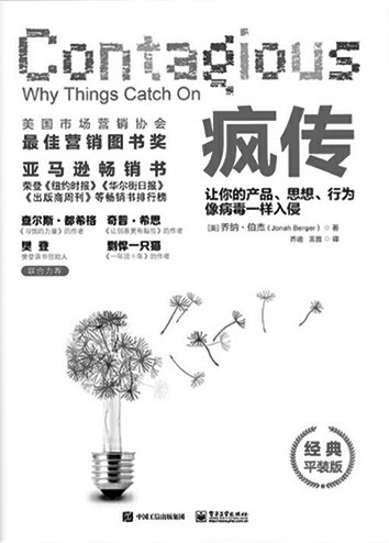 《疯传:让你的产品、思想、行为像病毒一样入侵》[美] 乔纳·伯杰著 刘生敏、廖建桥译/电子工业出版社2020年6月版/58.00元/ISBN:9787121387869