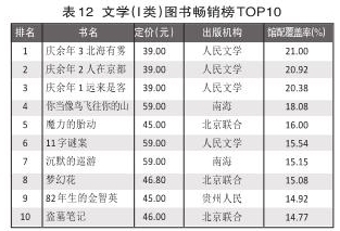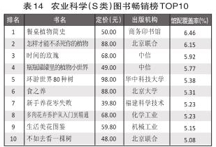TOP200图书中,小说类占到68种,其中“庆余年”系列、《大象席地而坐》,是由电视剧、电影的热播带动馆藏量的提升;此外,刑侦类小说如“侯大利刑侦笔记”系列及“罪全书”系列也榜上有名。同时,我们发布文学、生物科学、农业科学等5类细分市场最受欢迎畅销书TOP10。(见表12~16)