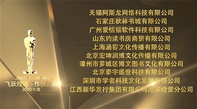 为答谢2020年为海豚发展做出卓越贡献的合作伙伴,此次大会还举行了金海豚颁奖典礼,特别设置卓越版权合作伙伴奖、卓越印制合作伙伴奖、杰出经销合作伙伴奖、飞跃经销合作伙伴奖、卓越经销合作伙伴奖。
