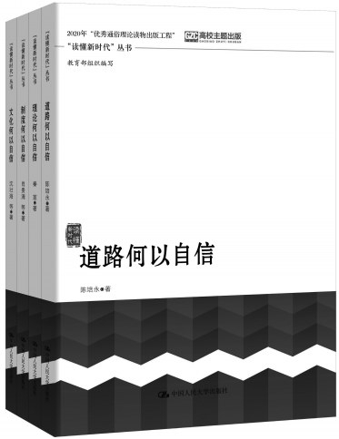 “读懂新时代”丛书 中国人民大学出版社2020年12月版/48.00元(册)(《道路何以自信》陈培永著/9787300275109;《理论何以自信》秦宣著/9787300274959;《制度何以自信》肖贵清等著/9787300275024;《文化何以自信》沈壮海等著/9787300274935)