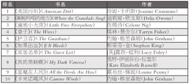 在畅销书榜单上,外国作家几乎占半壁江山,2020年有8位外国作家入围,分别是美国畅销书作家斯蒂芬·金、波兰幻想小说家萨茨科夫斯基、德国战争文学作家雷马克、英国侦探小说家阿加莎·克里斯蒂、美国作家路易莎·梅·奥尔科特、英国动物小说女王霍莉·威布、英国畅销书作家J.K.罗琳、丹麦童话作家安徒生。美国作家斯蒂芬·金作品已连续两年赶超东佐娃作品,英国作家霍莉·威布自2017年以来连续4年荣登儿童类畅销书榜单。
