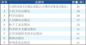 表1、表2 注:1.2019年,中国科学技术出版社变更为“中国科学技术出版社有限公司(暨科学普及出版社)”。科学普及出版社17部与中国科学技术出版社7部合计为24部。