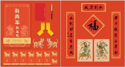 兼具复古与时尚,红色文创也可以“赛博朋克”。据了解,这是人民文学出版社推出的第三个新年礼盒。为何瞄准《新青年》主题与元素,人民文学出版社文创部副主任邝芮介绍:“2021年是中国共产党建党100周年,刮起了一波“新青年热”,我们发现,《新青年》的主创编辑和作者,很多都是我们的作者。”为此,人文社携陈独秀、李大钊、鲁迅、蔡元培、沈尹默等“新青年天团”为广大青年送上新年祝福。“2022新青年新年礼盒”内容丰富,包含礼书形礼盒、陈独秀寄语配上鲁迅字体红包、李大钊“铁肩担道义,妙笔著文章”的名联笔记本、蔡元培的书法对联及著名学者、书法家沈尹默的书法福字、自主设计的德先生&赛先生门神、复古虎头窗花、与上海英雄钢笔厂合作定制的复古英雄钢笔“文学青年”,一双新年配色的新青年袜子。