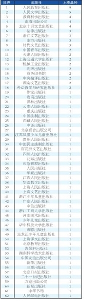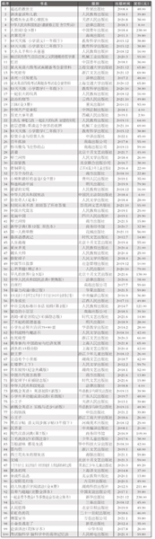 图书零售线上市场TOP100图书分属62家出版社(见表4),其中中央出版社24家,地方出版社38家。上榜品种最多的是人民教育出版社,共9种书上榜;人民文学出版社次之,共5种书上榜;教育科学出版社、南海出版公司、北京十月文艺出版社,各4种书上榜;法律出版社、浙江文艺出版社等4家出版社,各3种书上榜;中国青年出版社、天津人民出版社等9家出版社,各2种书上榜;作家出版社、海南出版社等44家出版社,各1种书上榜。