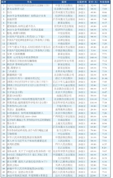 2月份,线下、线上市场的新书动销品种较上月不同程度增长,其中 TOP50(见表5)品类丰富,销量可观。