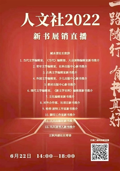 日前,人民文学出版社在线上开展了“人文社2022新书展销直播”活动,人民文学出版社当代文学编辑室、大众读物编辑室、青年文学编辑室、社科出版中心、少儿出版中心以及哈利波特工作室等纷纷亮相,推荐新书。无独有偶,重庆大学出版社在微信视频号直播“2022新书推介会”发布新书及重点图书,组织相关负责人对图书进行讲解;以“共生·共创新可能”为主题的“中信出版2022年度经销商绿色共赢大会”在线上举办,数百家合作方共同参与……社店对接对书业上下游来说有着重要作用。