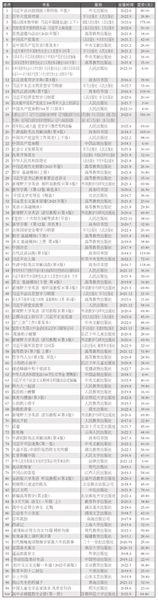 10月份,图书零售线下、线上市场新书动销品种均较上月增加,新书热销TOP50(见表5),反映了热销头部新品的市场占位。