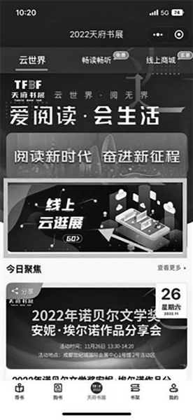 除了“开学季”“6·18”“双11”“双12”等重点营销活动外,每年的天府书展也是文轩在线最为重要、全力推进的核心项目之一。2022年天府书展期间,文轩在线充分发挥出自身渠道与资源优势,将天府书展·云世界打造成为一场功能完备、全民参与、与时俱进、永不落幕的阅读盛会,“云世界”实现销售码洋7139万。