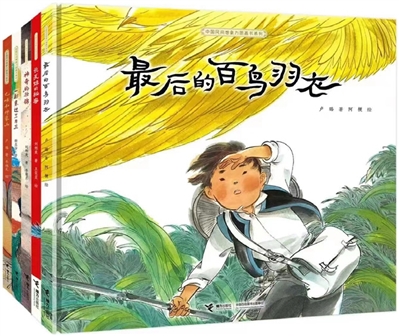 This set of books utilizes diverse artistic techniques to retell classic stories from children’s perspective. The theme is rooted in tradition and full of new ideas and imagination. The Magic Cloth Made by One Hundred Birds’ Feather tells the growth story of a brave ranger boy fighting for the lives of one hundred birds. The Secret of the Long-haired Girl appeals to everyone to protect the water and talks about how children keep secrets in a poetic way. The Amazing Zhuang Brocade tells the story of a hardworking woman who is very good at weaving. She pursues her dreams and weaves the most beautiful brocade in the world. The Adventure on the Third Day of March tells the story of four children’s adventures on the third day of March. In Bagu and Sacred Elephant Mountain, children and elephants guard their natural homes.