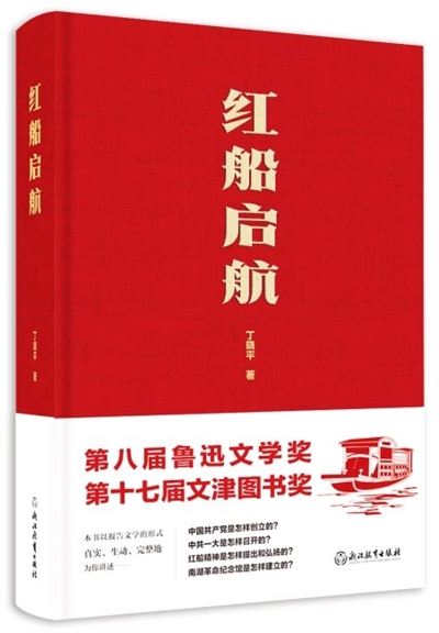 《红船启航》是军旅作家丁晓平历经四年创作的一部横跨文学、历史、学术的报告文学力作。全书分上下两卷:上卷生动讲述了五四运动以来马克思主义在中国的传播、“南陈北李”相约建党以及“一大”在上海望志路和嘉兴南湖召开的经过,完整再现了中国共产党创建的艰难历程;下卷首次系统讲述了南湖革命纪念馆的发展、红船的仿制过程,深入挖掘记录了嘉兴人民保护、建设和用好红色资源、赓续红色血脉、弘扬红船精神,描绘了共同富裕新画卷的感人故事。该书获第8届鲁迅文学奖、第17届文津图书奖等荣誉。