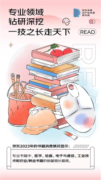 从年轻人读什么书中,能一定程度上看出他们当下的专业选择和未来的职业规划。在京东,2023年网上销售的专业书籍中,医学、绘画、电子与通信、工业技术和农业/林业书籍的销量增长最高。