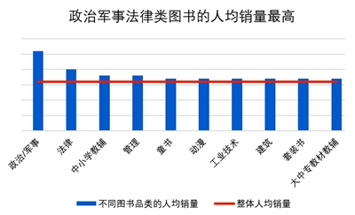 除了学生、各领域从业者等群体型消费购书,很多细分领域还存在着许多的爱书之人。政治/军事、法律、管理类图书的人均销量最高,无论是学海无涯还是爱好钻研,人们在各个领域的深耕都离不开书籍相伴。