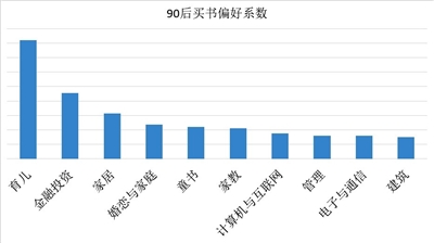90后则忙着学习处理家庭生活和赚钱,在育儿、家居、婚恋类图书的消费偏好较高,同时在金融投资、计算机与互联网、管理类图书的消费也有较高偏好。