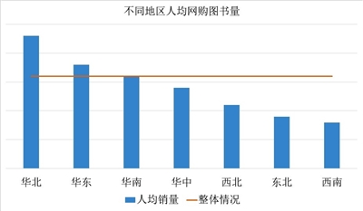 从区域来看,华北、华东地区人均网购图书量比全国均值高1%~4%,华南地区人均网购图书量与全国均值基本相当,华中、西北、东北、西南地区人均网购图书量低于全国均值。
