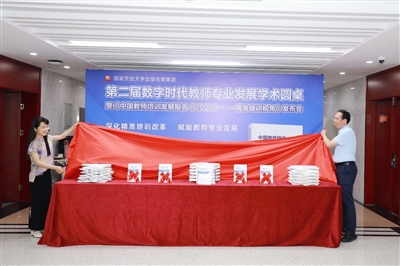 2023年6月17日,第二届数字时代教师专业发展学术圆桌暨《中国教师培训发展报告(2022)——精准培训视角》发布会在国家开放大学出版传媒集团举行,教师培训领域的政策制定者、学术研究者与实践探索者共聚一堂,深入探讨数字时代教师精准培训改革的政策导向、理论建构与实践探索,为教育数字化背景下我国教师精准培训改革建言献策。多家媒体代表现场参会,在线观看直播人数超过1.45万人。