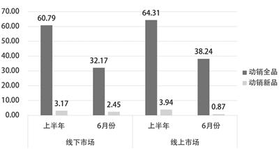 从时段看,第二季度和6月份,虽然线上市场同比均呈下降,但环比均呈增长: