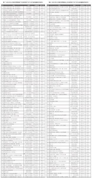 综合图书零售线下、线上市场两个热销TOP100,按出版社上榜书频次排列,人民出版社以23.2种(次)列第1位;中央文献出版社以8.5种(次)列第2位;人民文学出版社、高等教育出版社各以8种(次),并列第3位。