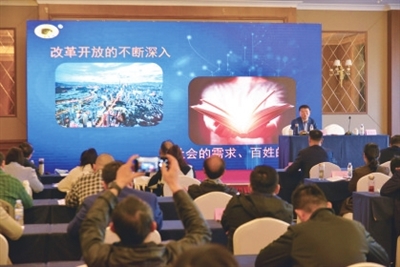 2022年10月16日,党的二十大胜利召开。商会将宣传贯彻党的二十大精神作为首要政治任务,多措并举,推动党的二十大精神在商会和企业中落地生根。11月16日,山东省书业商会与世纪金榜集团联合举办了党的二十大精神辅导报告会,邀请山东师范大学马克思主义学院知名教授、博士生导师高继文,作了主题为《全面建设社会主义现代化国家的政治宣言和行动纲领》的辅导报告。山东省工商联16家直属商会代表、商会驻济会员企业党员、代表现场参加,外地会员通过云平台直播线上聆听,共200多人参加。大家深刻领悟党的二十大精神的核心要义,凝聚起了铆足干劲抓落实的强大合力。
