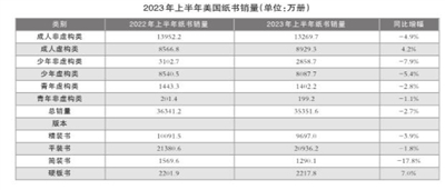 美国书业上半年小幅下滑