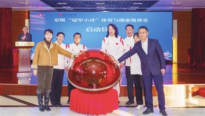 京版“冠军小讲”体育与健康微课堂正式启动。奥运等赛事冠军团队代表陈中、李娜、张湘祥、张昊、杨波,北京体育大学体育中外人文交流研究院院长李睿鉴,北京教育科学研究院基础教育教学研究中心体育教研室主任樊伟共同点亮启动球。北京体育大学教务处处长章潮晖、北京出版集团教材分公司总经理邬云泰互赠《冠军讲体育》课程卡、“北京文化书系”图书。(穆宏志)
